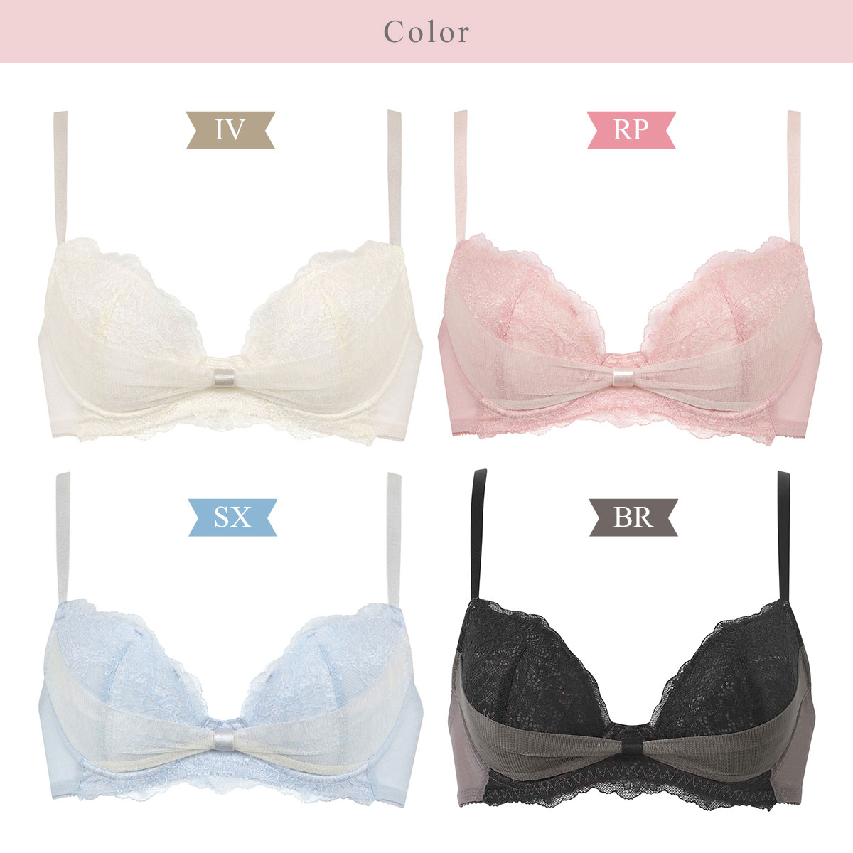 ブラジャーのパターンは、大好評「朝つくった谷間がながもちする」キープリボン構造。バストをしっかりと支えるので、動いてもバストボリュームが逃げず、谷間をキープでき、カップ上辺にパカパカ隙間ができにくいのが特徴です。
