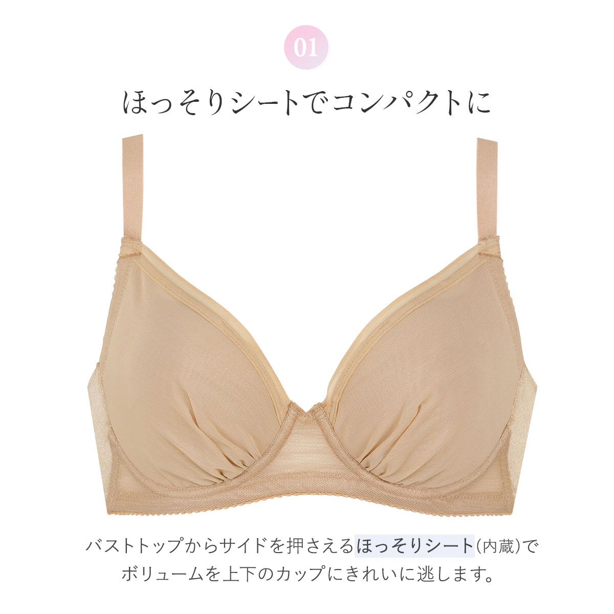 ボリューミィなバストの救世主!バストの突出を抑え、コンパクトに見せる、ワコールの【小さく見せるブラ】シンプルタイプ。よりフィッティングを改善してリニューアルしました。