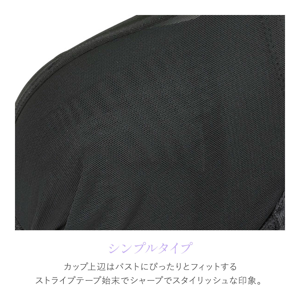 デイリー使いにピッタリなシンプルタイプ。カップ上辺はバストにぴったりとフィットするストライプテープ始末で、シャープでスタイリッシュな印象です。