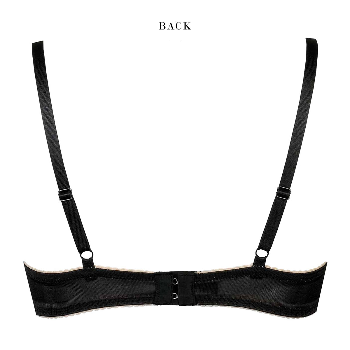 身につければ、クールでいてセクシー。バラのアップリケに幾何学柄レースを添えて、