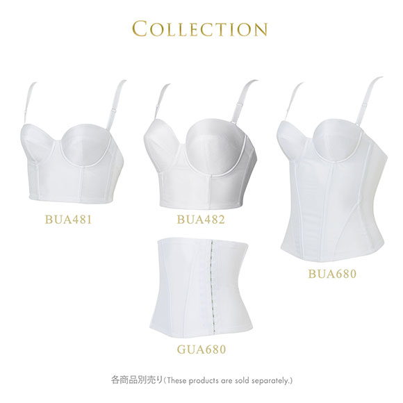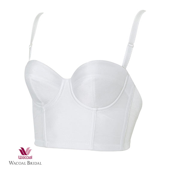 肩を出すドレスに合う、ストラップが取り外し可能な1/2カップタイプ。バストトップ位置を中心に寄せた、高さのあるカップシルエットです。使いやすい丈なので、特別な日以外にもお使い頂けます。カップ下のボーンで、ボリュームのあるバストをささえる構造になっています。