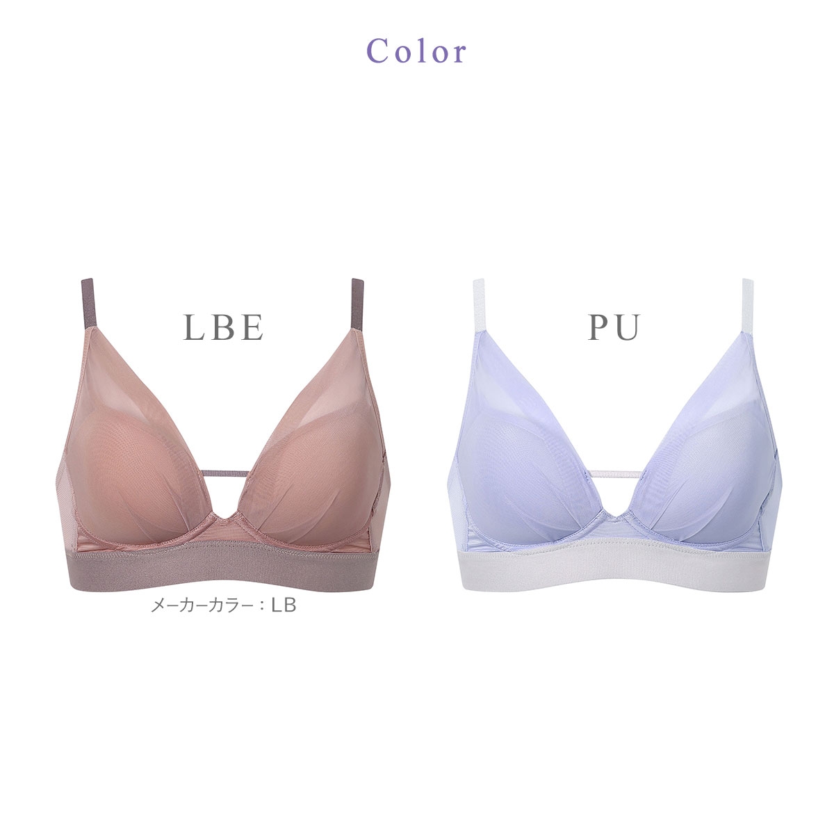 しっかりホールド感があるのに、解放感のあるラクなつけごこちが魅力。モールドカップが自然なまるみをメイクし、機能性と使いやすさを兼ね備えています。カップのパワーネットはレーシィタイプと比べ低い位置に設計し、胸もとのあいたアウターからも見えにくくおすすめです。