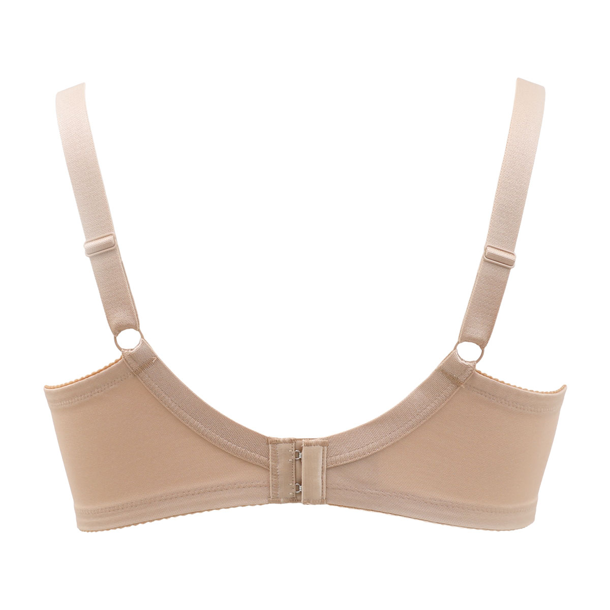 アンダー部分は、フルストレッチ構造でしめつけ感が少なくラクなつけごこち。バックは綿混素材を使用し、やさしい肌ざわりです。