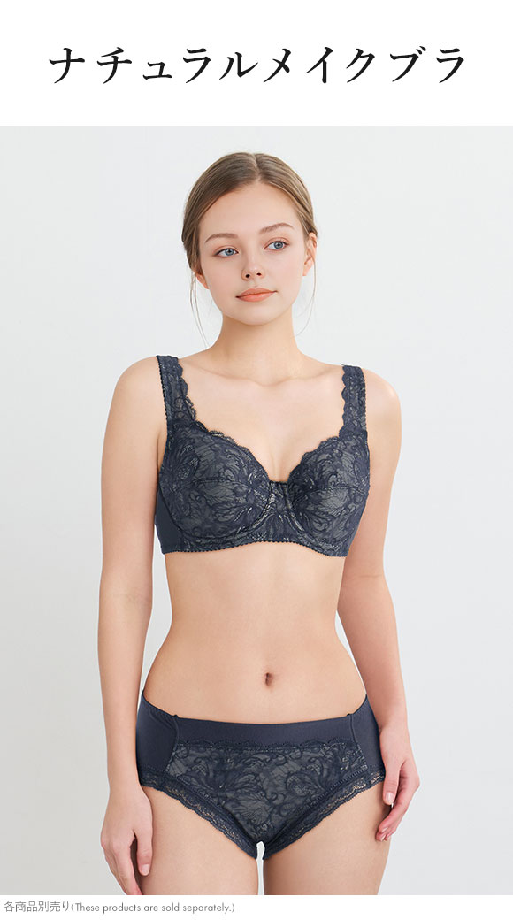 カップ肌側は綿混素材を使用し、やさしい肌ざわり。アンダーとカップ脇上辺の肌側には、伸びのよい綿混ストレッチテープを使用しています。
