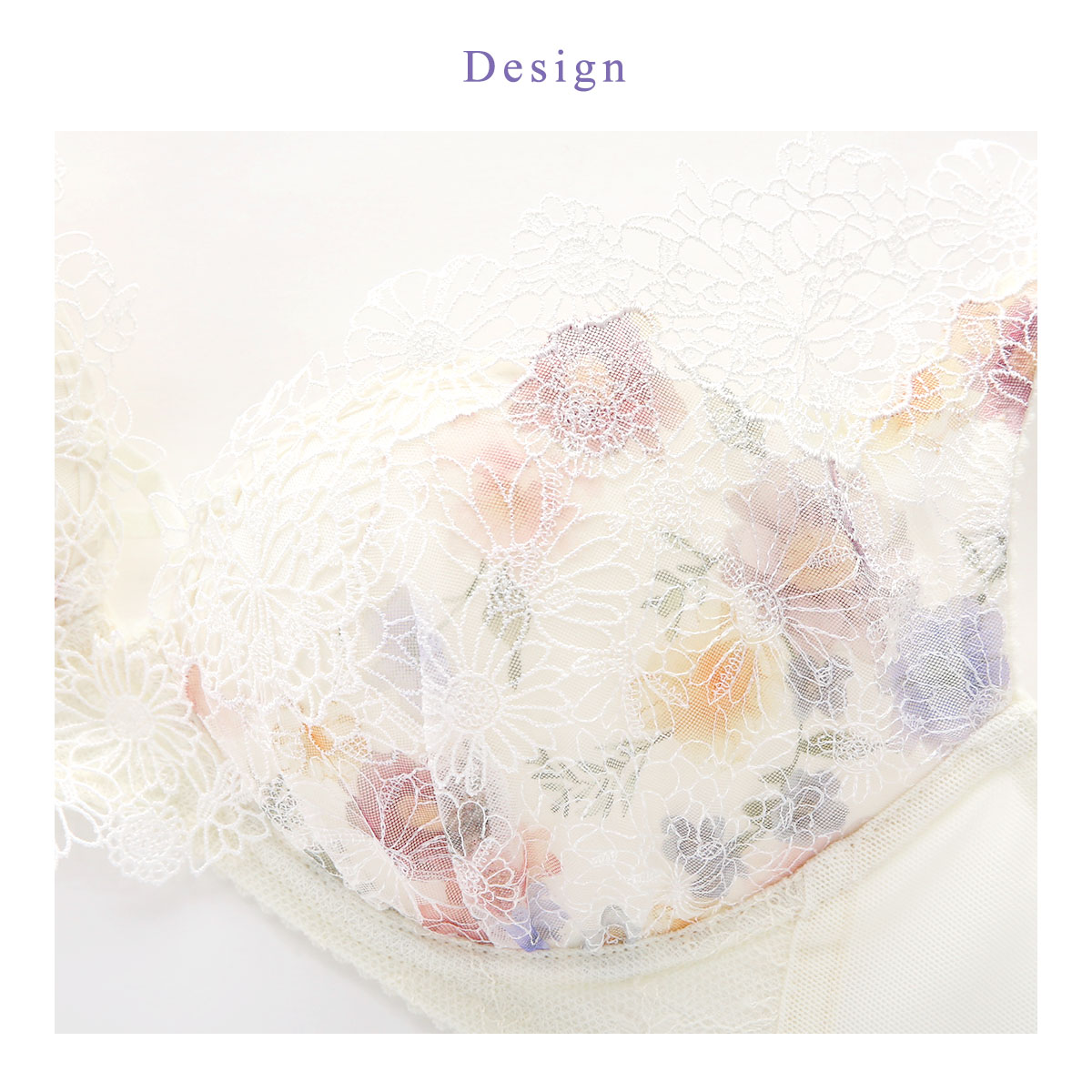モールドカップ肌側の厚みでバストを押し上げ、ボーンとカップ脇の切り替えで、ピタッとフィット。ハリとコシのあるプッシュアップ成型カップが自然なまるみのあるバストをメイク。前中心が低く、ノンワイヤーのため圧迫感の少ないラクなつけごこちです。