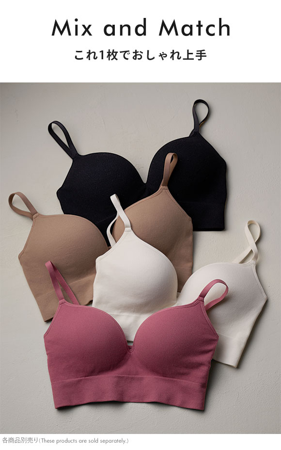 幅広い着こなしに使えるリブ素材のハーフトップブラジャーです。