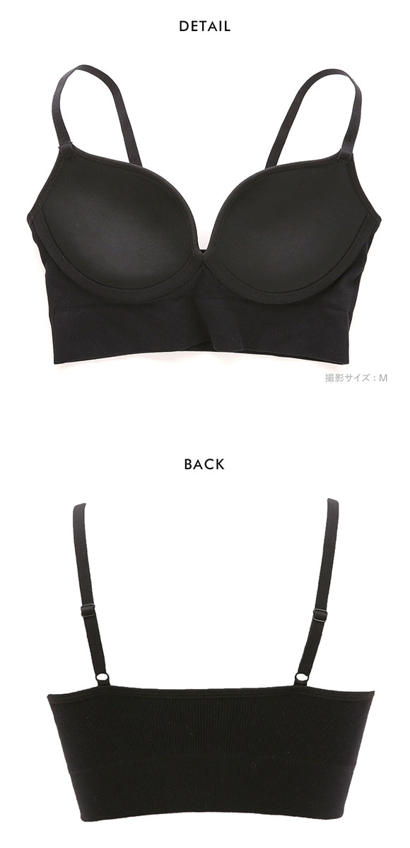 | 仕 様 | ・ホックなし、かぶりタイプ ・内蔵パッド入り、取り外し不可 ・肩紐調節:可 ・ノンワイヤー ・サイドボーン:なし