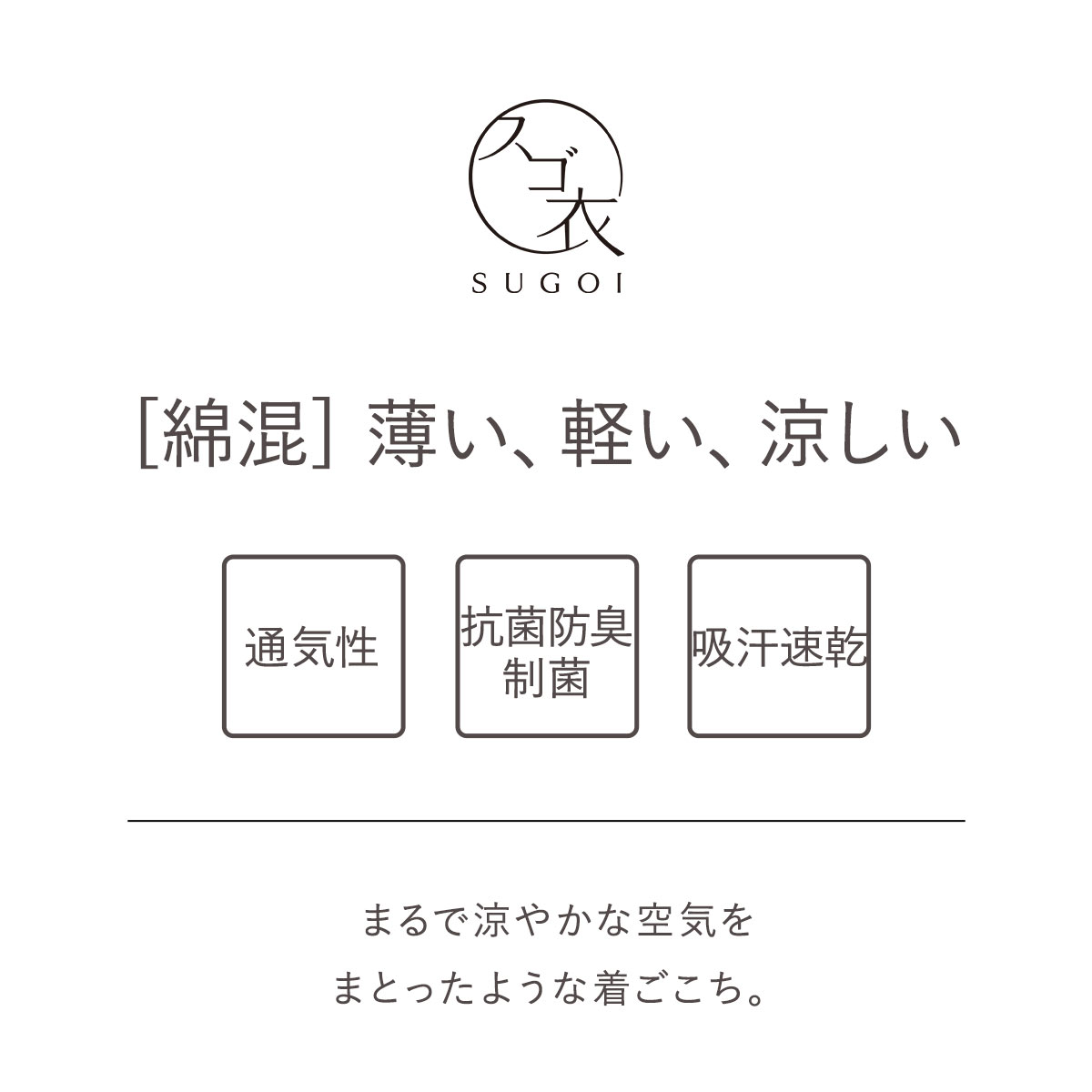 薄くて軽い、通気性にすぐれた綿混素材を使用した、スゴ衣【薄い、軽い、涼しい】の汗取りパッド付きフレンチ袖インナーです。