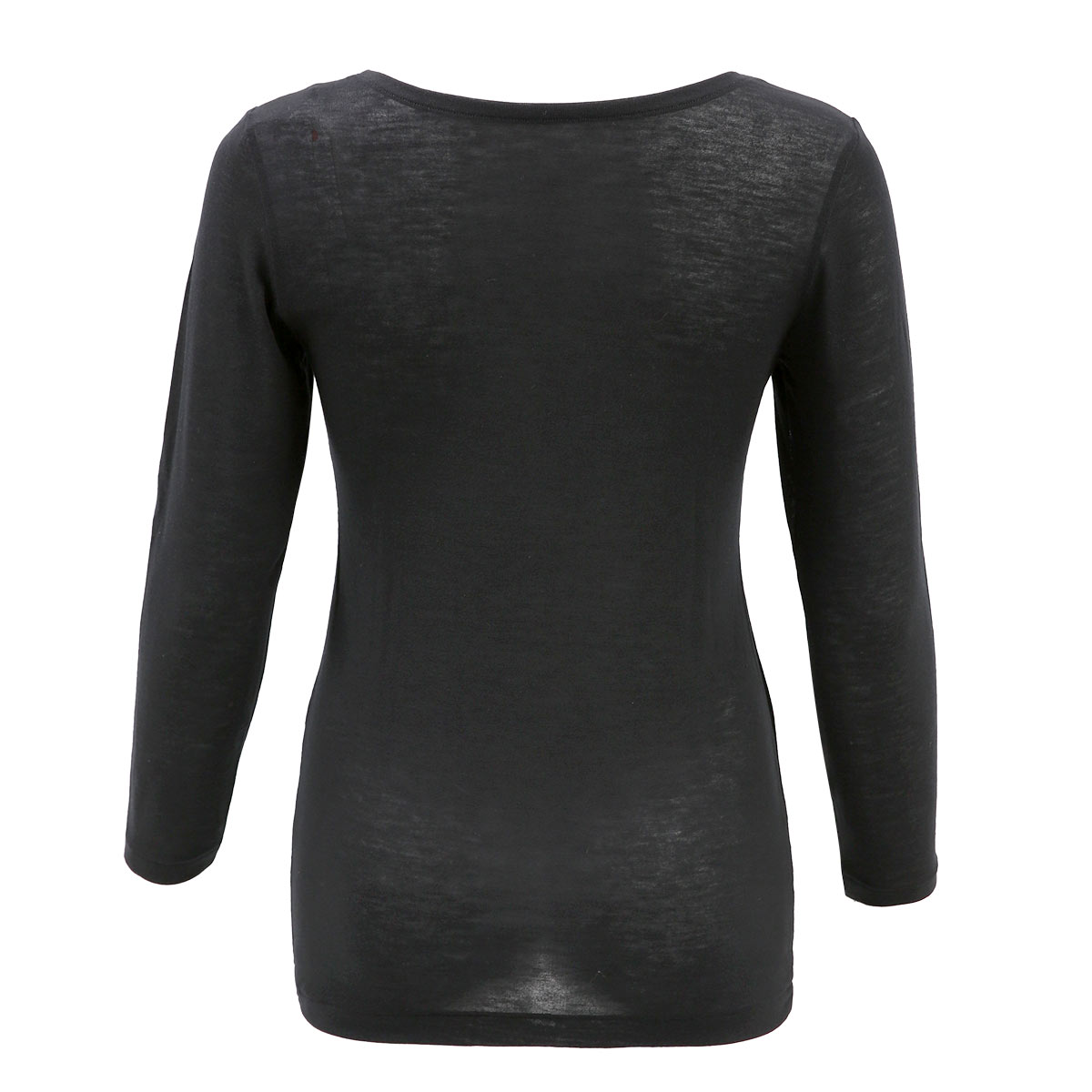 なめらかな風合いが特徴のマイクロモダールと、上質でやわらかなホワイトカシミヤを使用したローゲージのガーゼ調ベア天竺素材で、薄くて伸びがよくあたたかく、着ぶくれしにくいです。