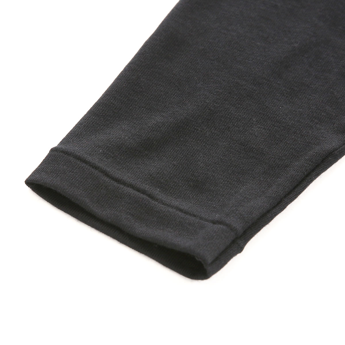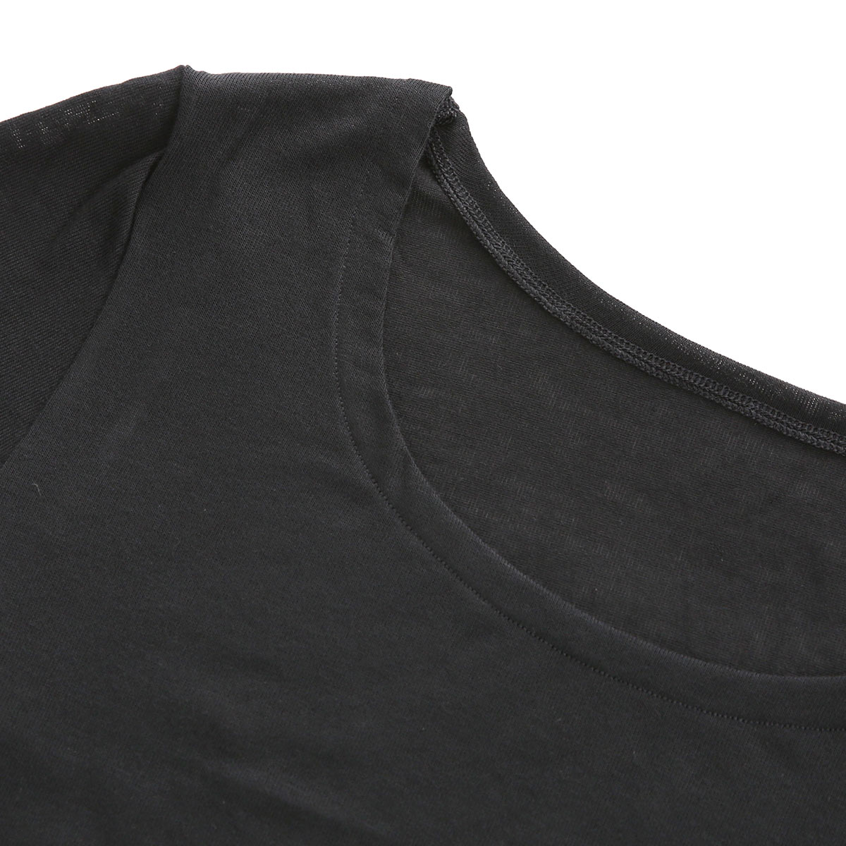 なめらかな風合いが特徴のマイクロモダールと、上質でやわらかなホワイトカシミヤを使用したローゲージのガーゼ調ベア天竺素材で、薄くて伸びがよくあたたかく、着ぶくれしにくいです。