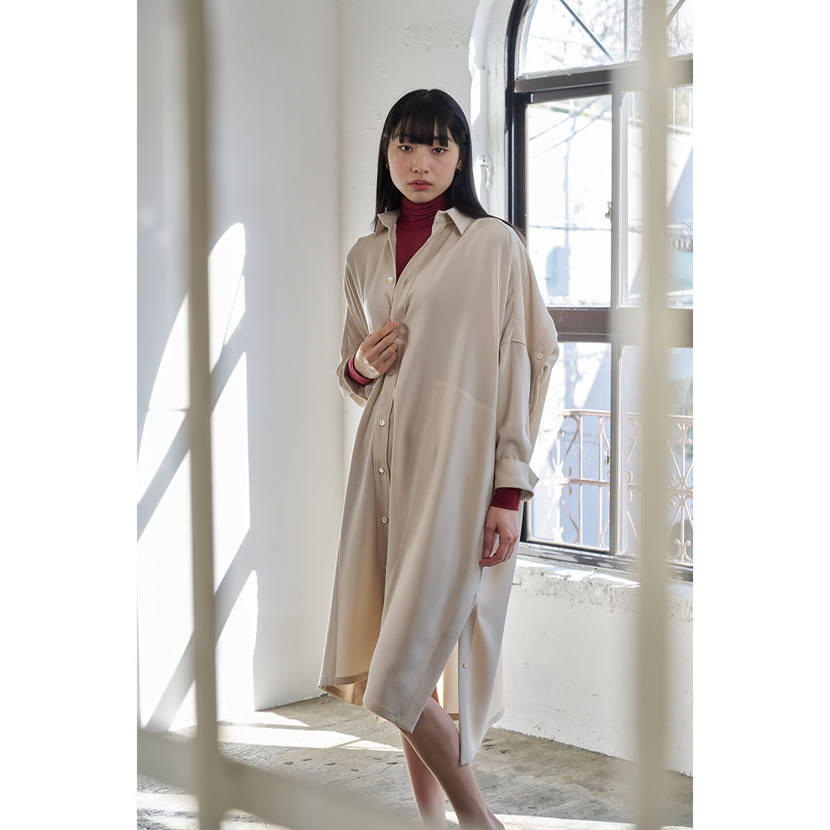 なめらかな風合いが特徴のマイクロモダールと、上質でやわらかなホワイトカシミヤを使用したローゲージのガーゼ調ベア天竺素材で、薄くて伸びがよくあたたかく、着ぶくれしにくいです。