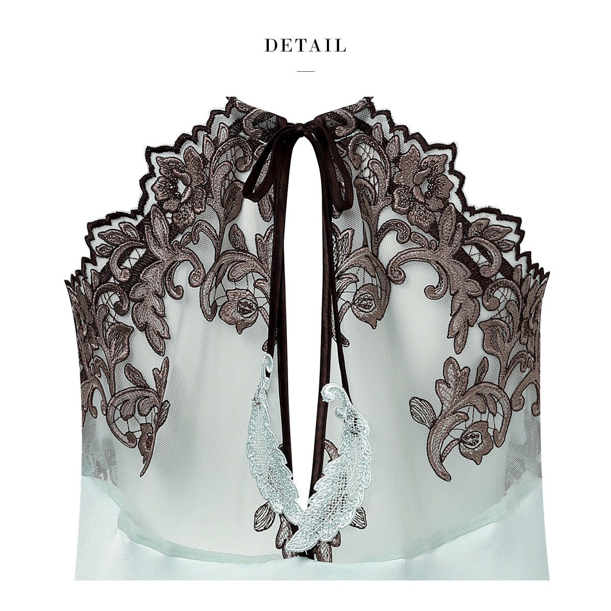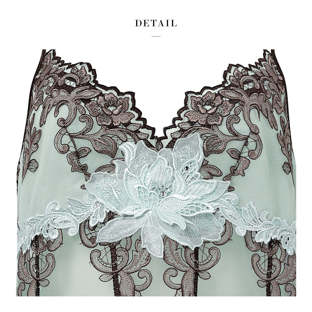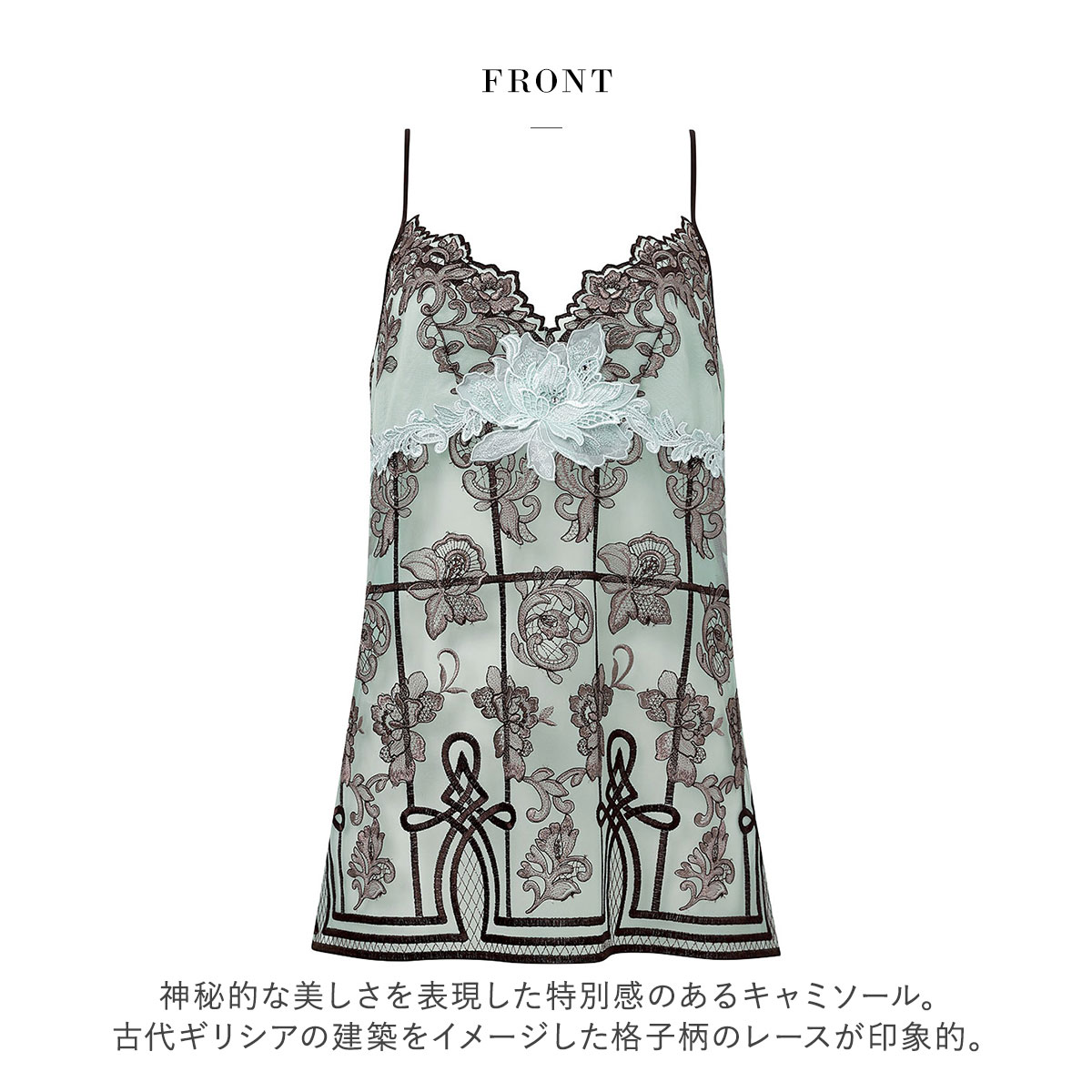 肌に浮き立つ華やかなレースの美しさにうっとりするような、ディテールにこだわったラグジュアリーな一枚です。