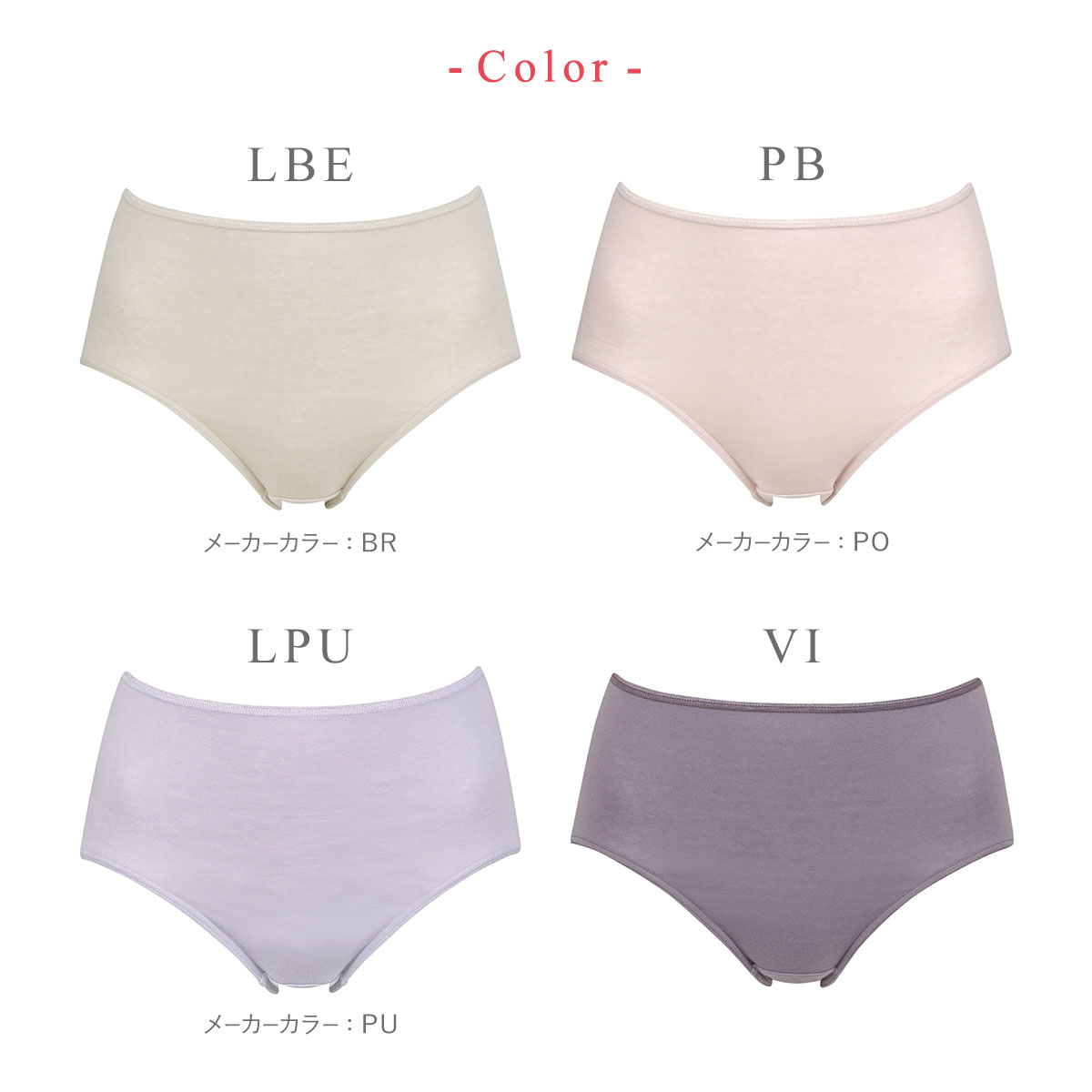 | カラー | LBE-薄ベージュ、PB-ピンクベージュ、LPU-薄パープル、VI-バイオレット、LKH-薄カーキ、CR-クリーム、BK-ブラック、BR-ブラウン |