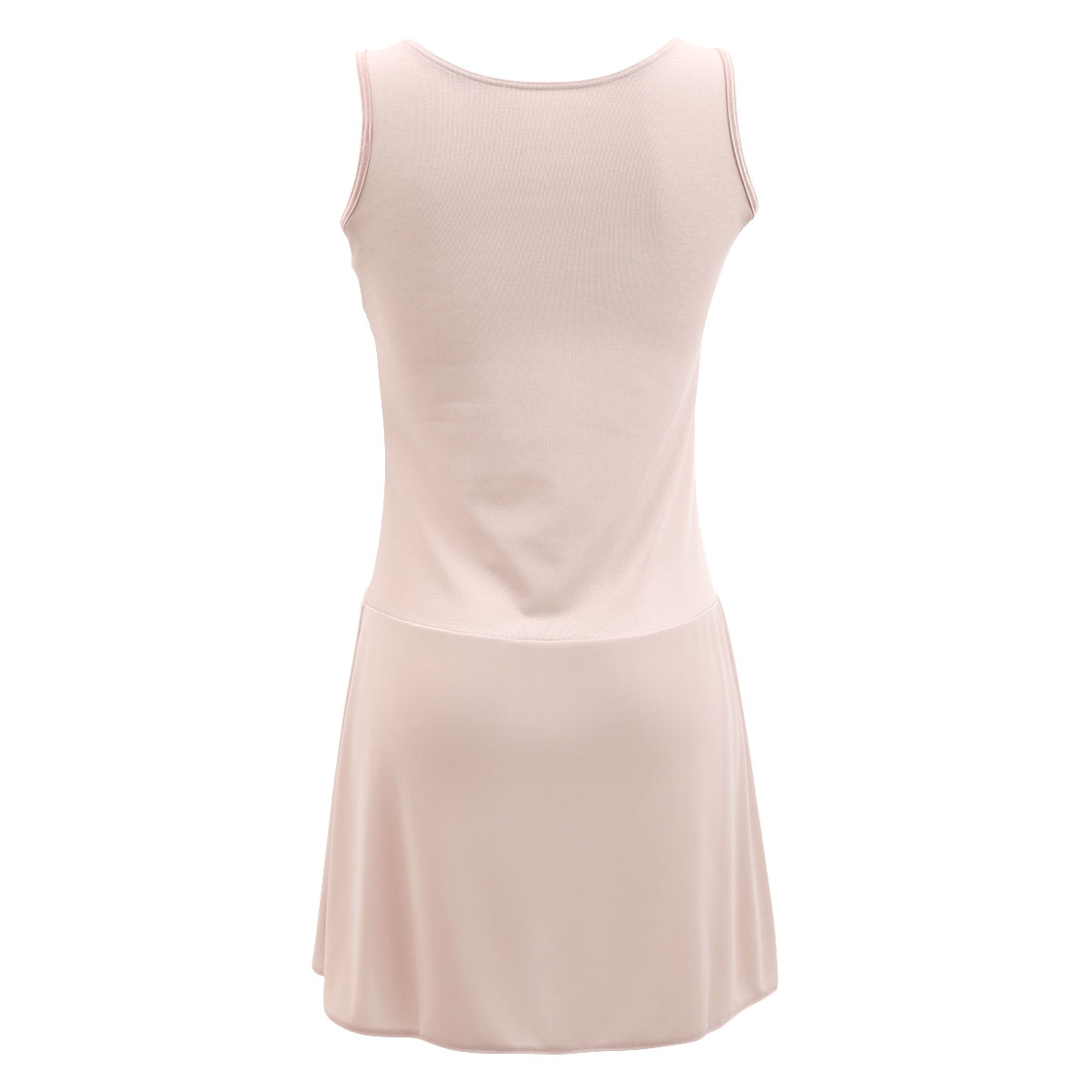 身生地部分は吸汗速乾性と抗菌防臭性のある綿混素材を使用し、汗をかいてもさらっと快適な肌ざわり。スカート部分は吸汗速乾性と接触冷感のある素材でひんやりさわやかに。脇の部分は汗取り付きで、気になる脇汗対策もしっかり。