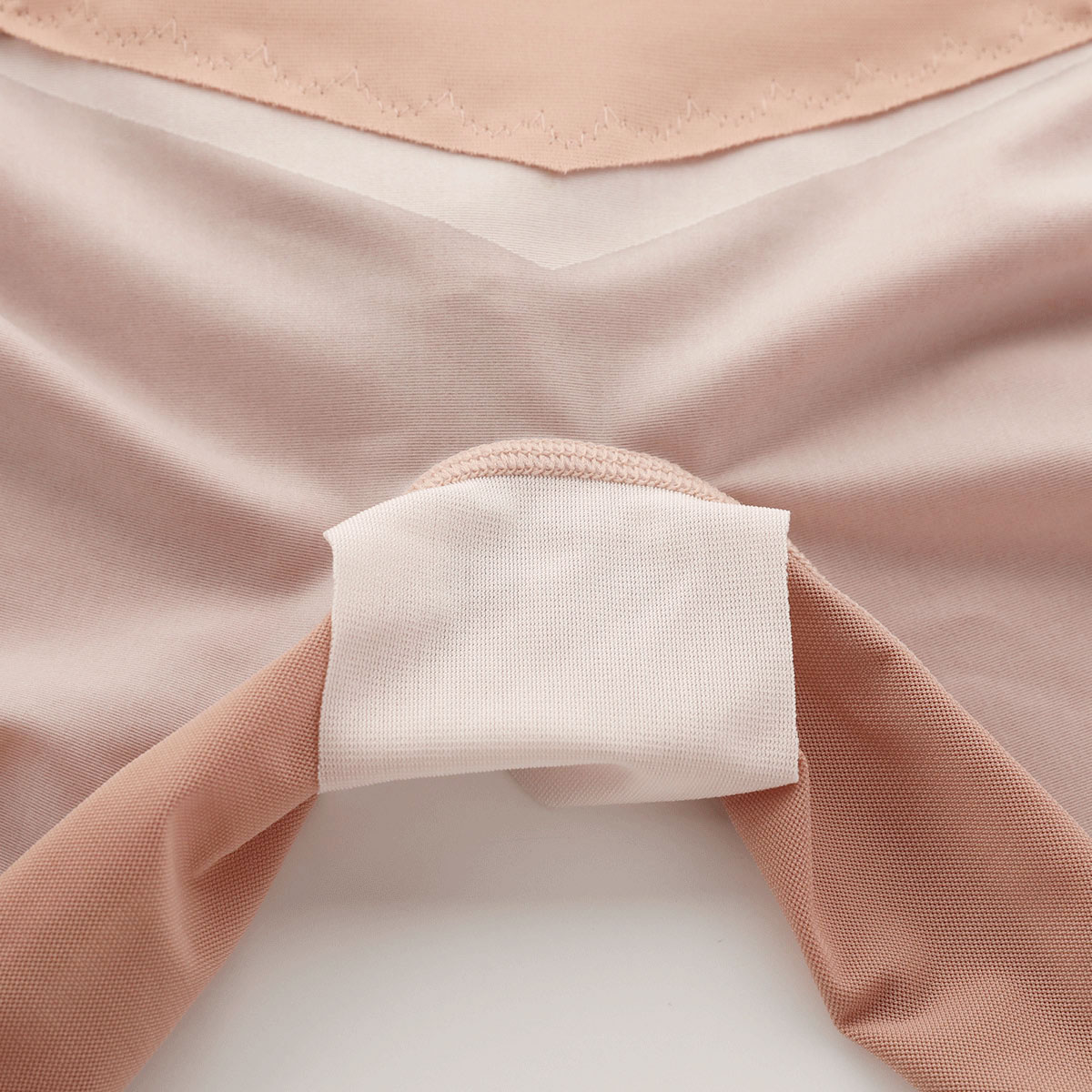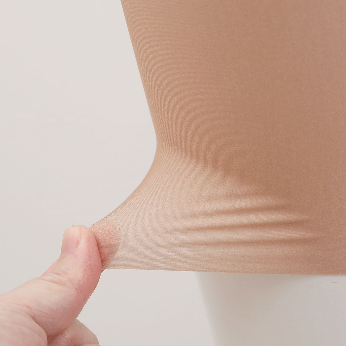 すべりにくく、ソフトな肌ざわりの超極細繊維を使用した【NANOテープ】を本体素材と一体型にすることで、ウエスト周りの伸度が上がり、さらに着脱がしやすくなりました!NANOテープは、着用時に引き上げたたるみを下からググッと引き上げ、スリムなシルエットをメイクします。