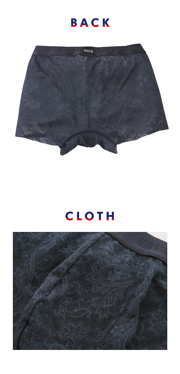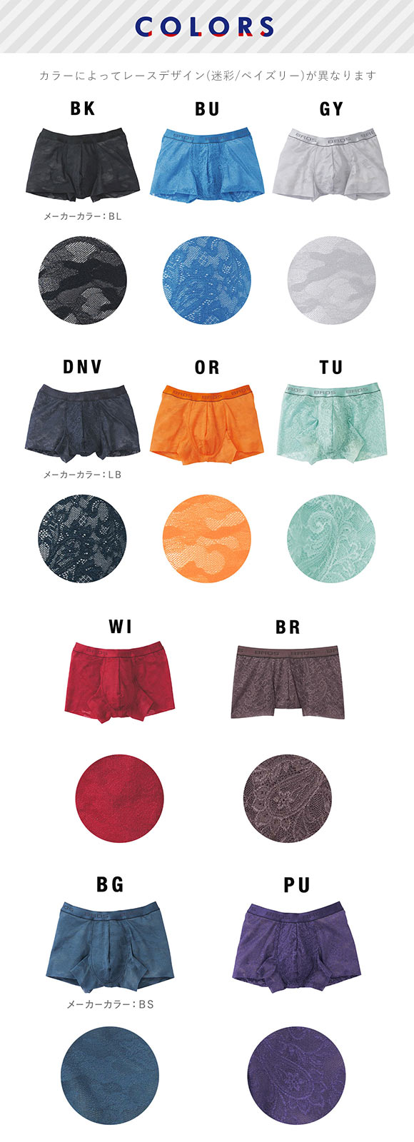 レースは透け感のある迷彩柄とペイズリー柄のオリジナルデザイン。デザイン・素材・パターンにこだわった、心地よさをぜひ。美しさと機能性を兼ね備えたボクサーパンツなので、普段使いにはもちろん、特別な日のギフトやプレゼントとしてもおすすめです。