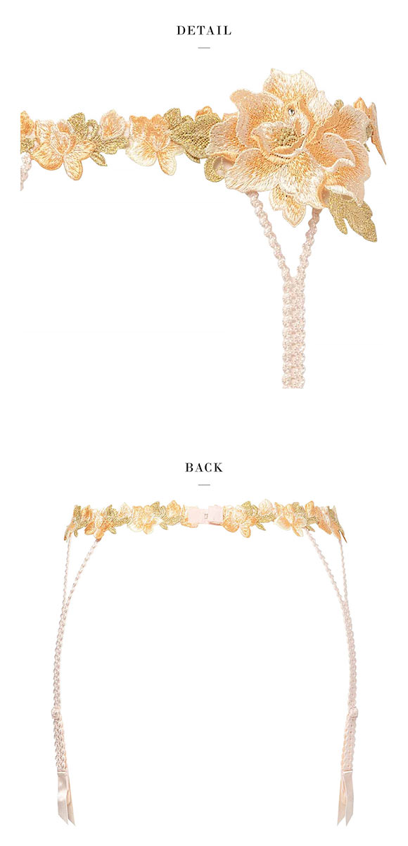 サルートのガーターベルトはZカンではなくブラのホックのような仕様。バックスタイルまで抜かりなく美しくいたい願望を叶えるためのこだわりです。