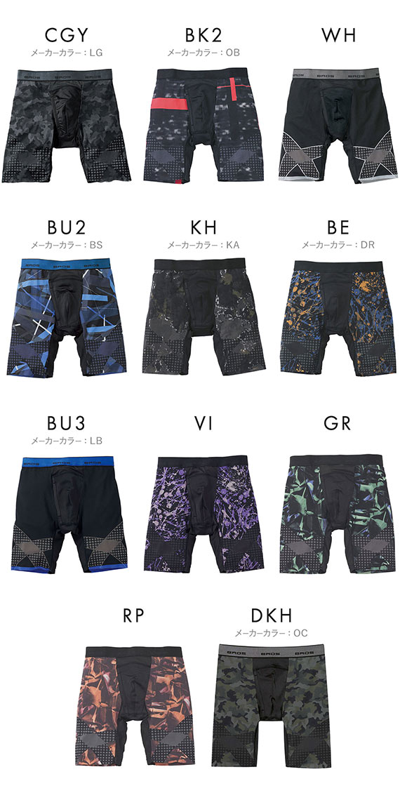 カラーCGY-チャコール、BK2-ブラック2、WH-ホワイト、BU2-ブルー2、KH-カーキ、BE-ベージュ、BU3-ブルー3、VI-バイオレット、GR-グリーン、RP-ロマンピンク、DKH-濃カーキ