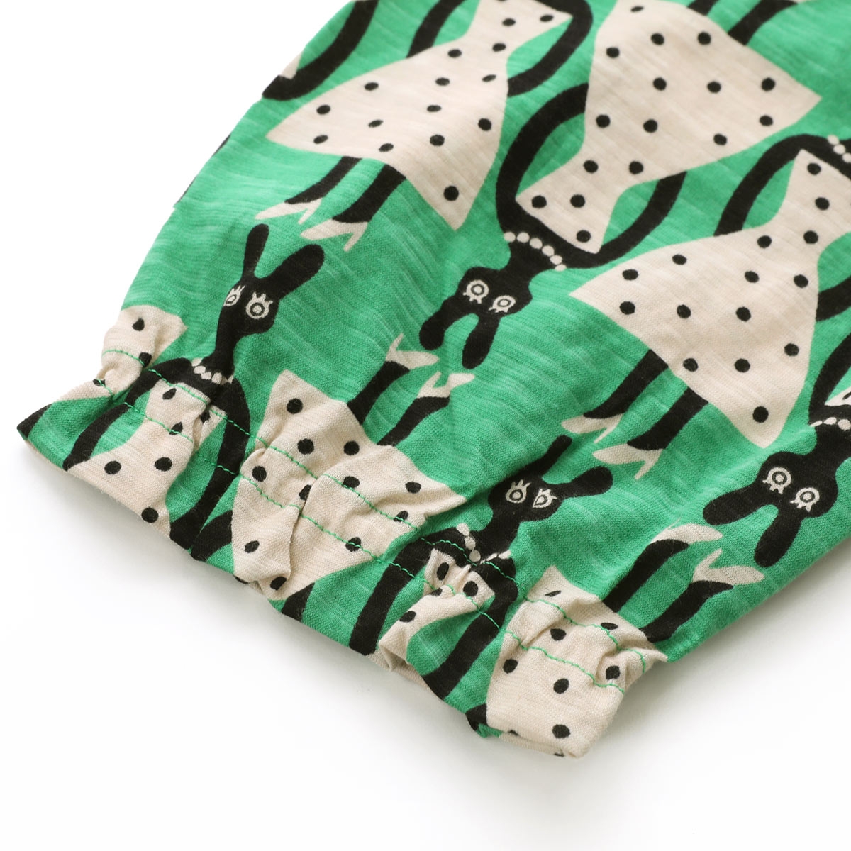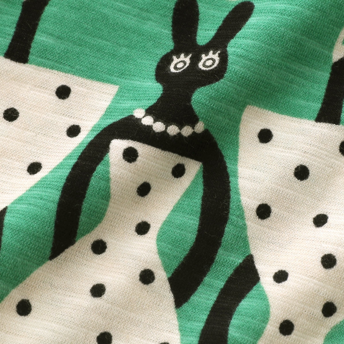 ドレスを着て、おめかしをしているうさぎがかわいらしいテキスタイル。