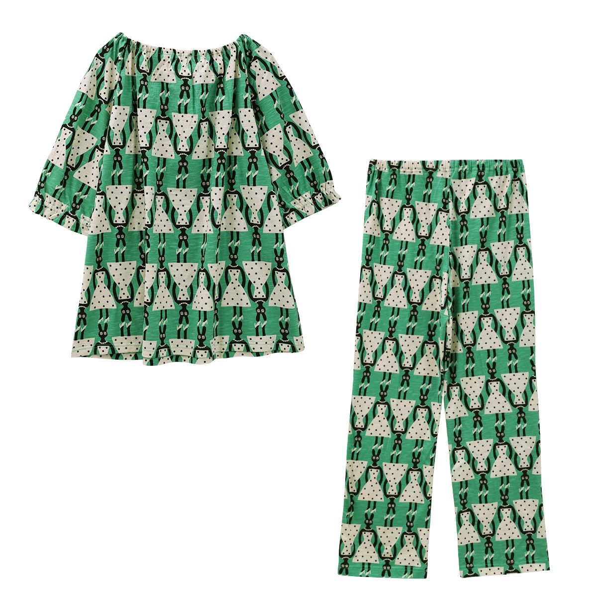ワコール マタノアツコ うさぎ パジャマ 上下セット 半袖 6分袖 ルームウェア Wacoal ATSUKO MATANO(GR-グリーン-M)