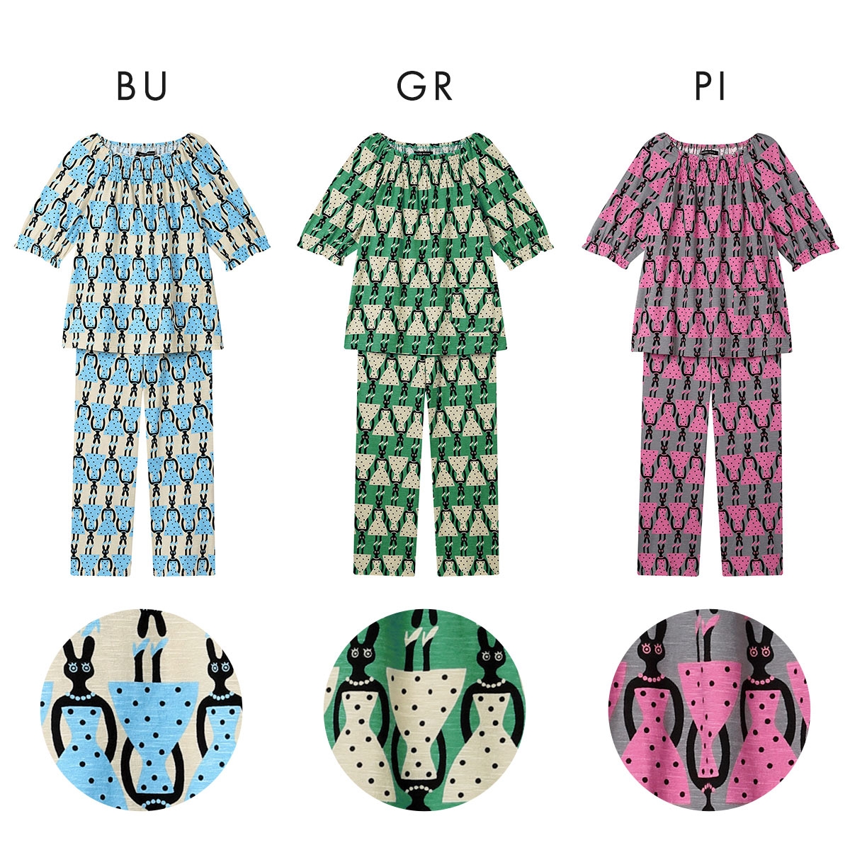 カラーBU-ブルー、GR-グリーン、PI-ピンク