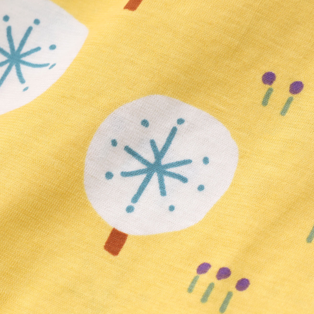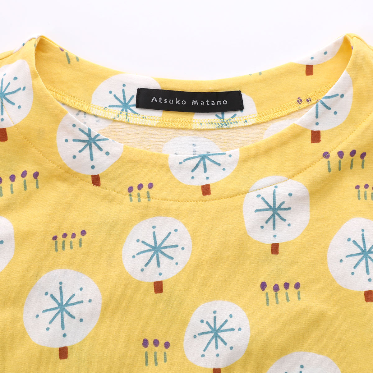 大きな木が大胆なテキスタイル。おうち時間にぴったりの、ゆったりリラックス感のあるシルエットで、トップス両サイドには便利なポケットつきです。