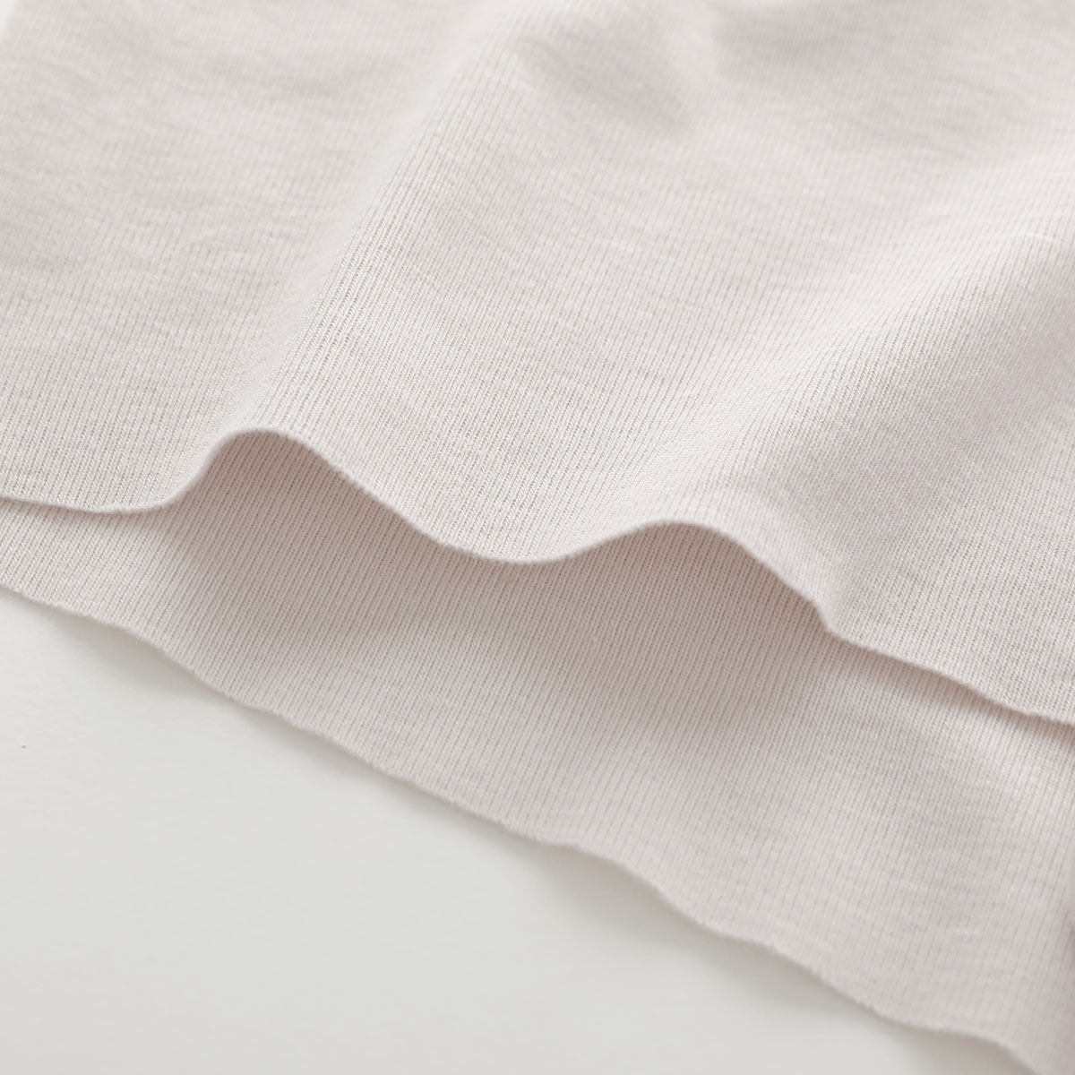 脇接ぎがなく肌へのあたりがやさしい設計です。股下接ぎは接着手法によるフラット仕上げ。ウエストはゴムをくるみこみ、快適な着用感。取扱い表示は本体素材にプリントされているので、タグのごわつきも気になりません。