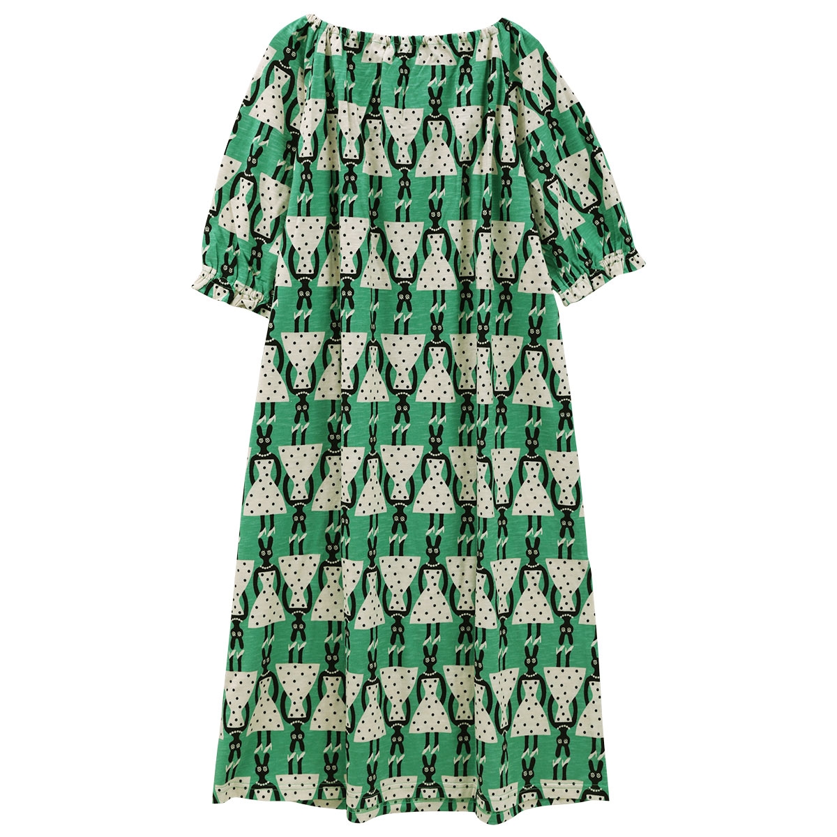 ワコール マタノアツコ うさぎ ワンピース 6分袖 パジャマ ルームウェア 綿100% Wacoal ATSUKO MATANO(GR-グリーン-M)