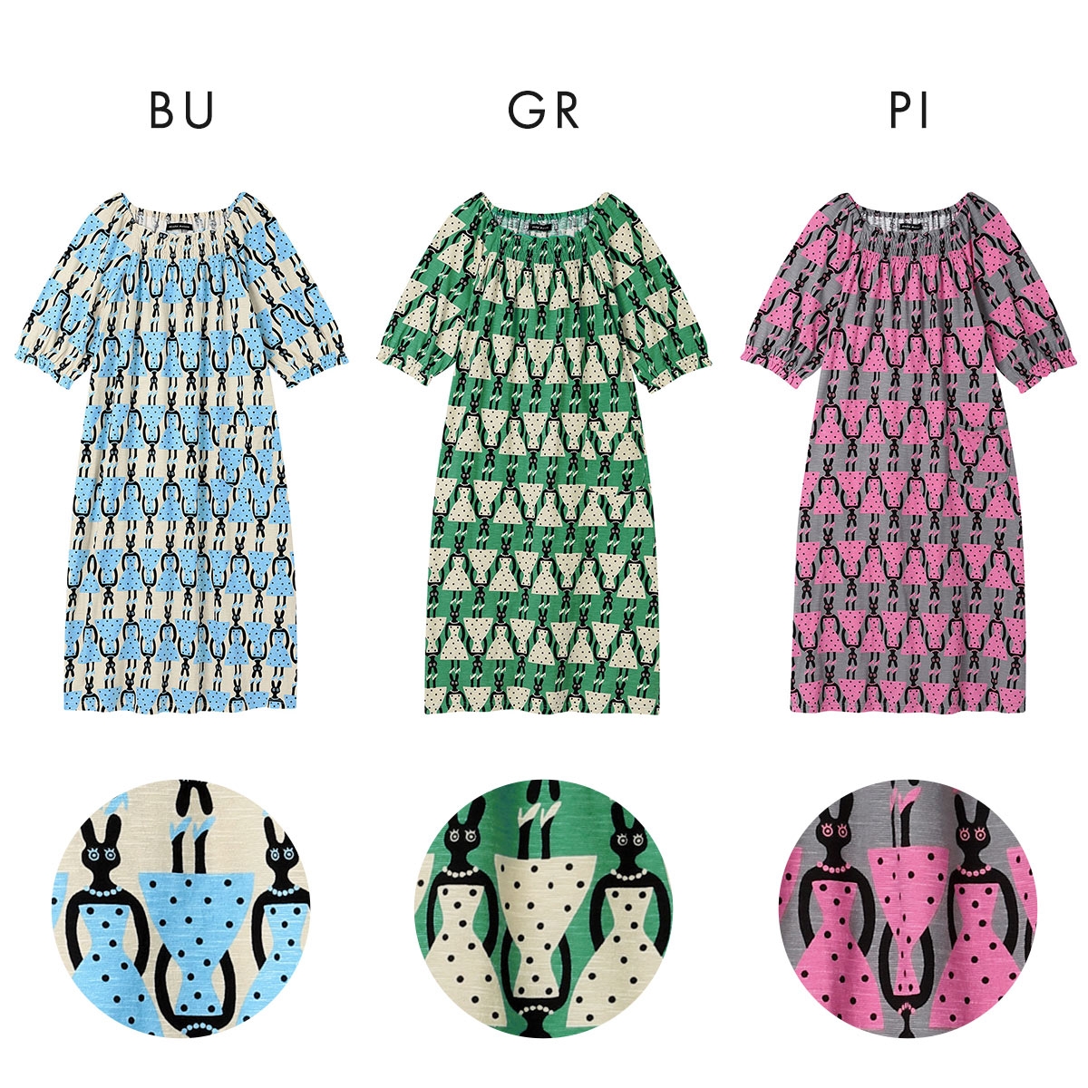 カラーBU-ブルー、GR-グリーン、PI-ピンク