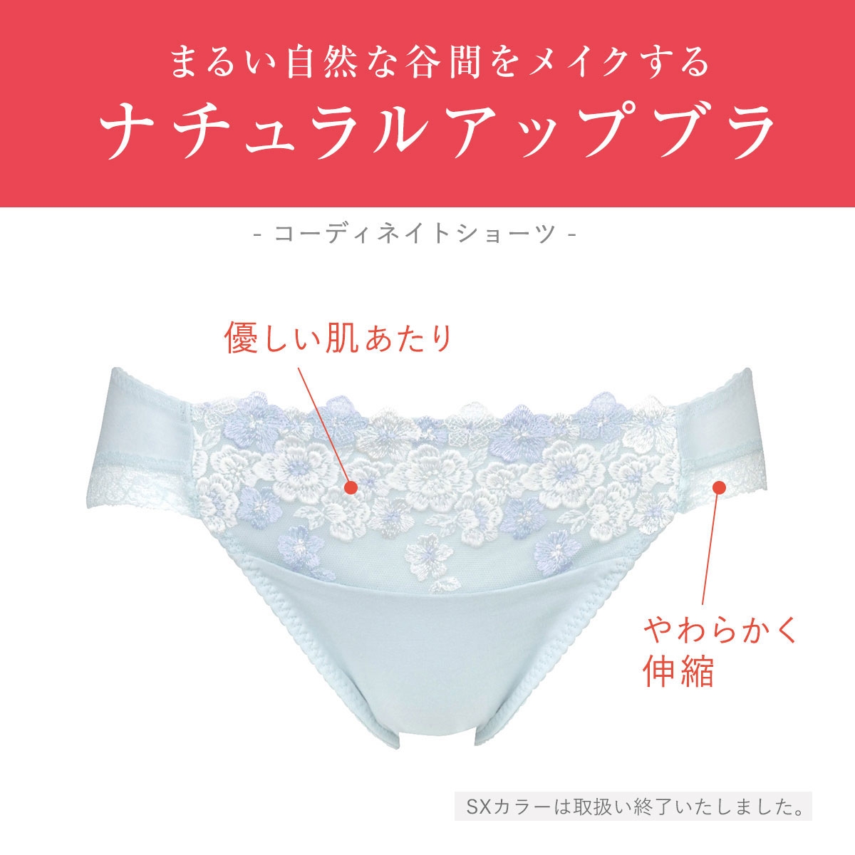 ふっくらナチュラルにバストアップ、まるい自然な谷間をメイクする【ナチュラルアップブラ】コーディネイトショーツです。
