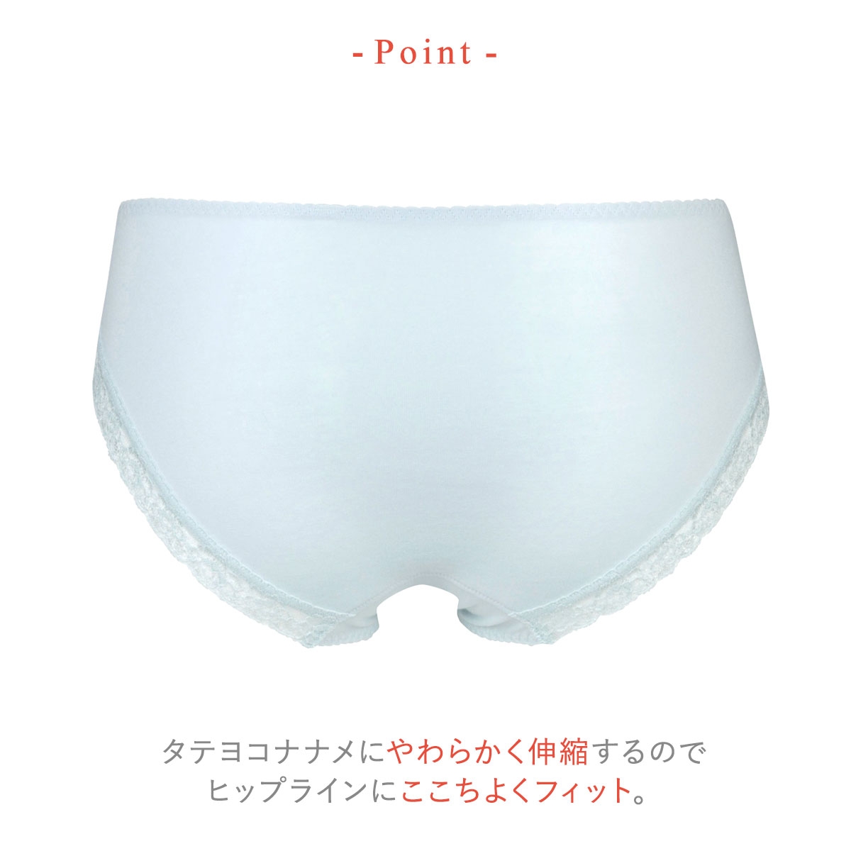ウエストと前裾に伸縮性のよいテープを使い、やさしくフィット。後ろ裾はくいこみにくく、アウターにひびきにくいストレッチレース仕上げです。