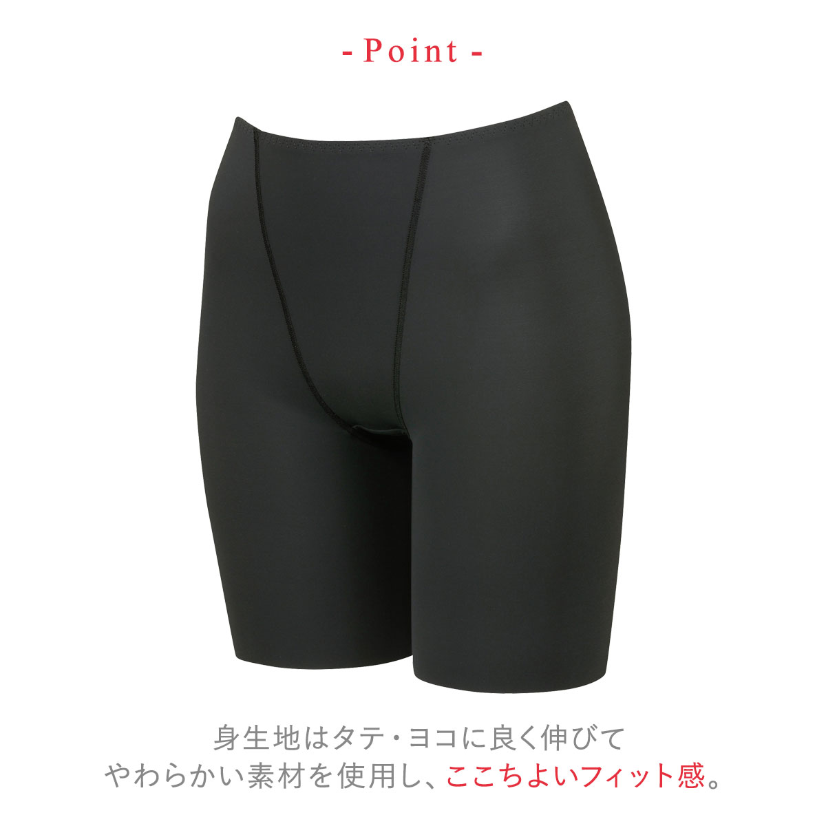 クロッチ付きなので1枚ばきOK!ガードル気分じゃないけれど、適度におなかとヒップをととのえたいときにおすすめです。