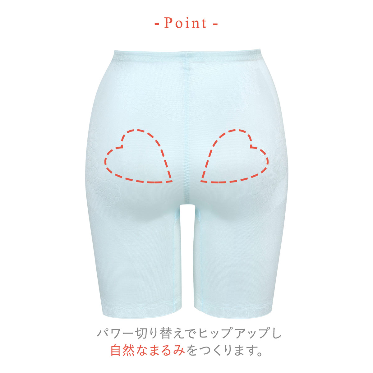 ヒップ下は強・中・弱の3段階パワー切り替えで、ヒップアップ力抜群!サイドも2段階のパワー切り替えですっきりシルエットをメイクしながら、キュッと綺麗にヒップアップします。