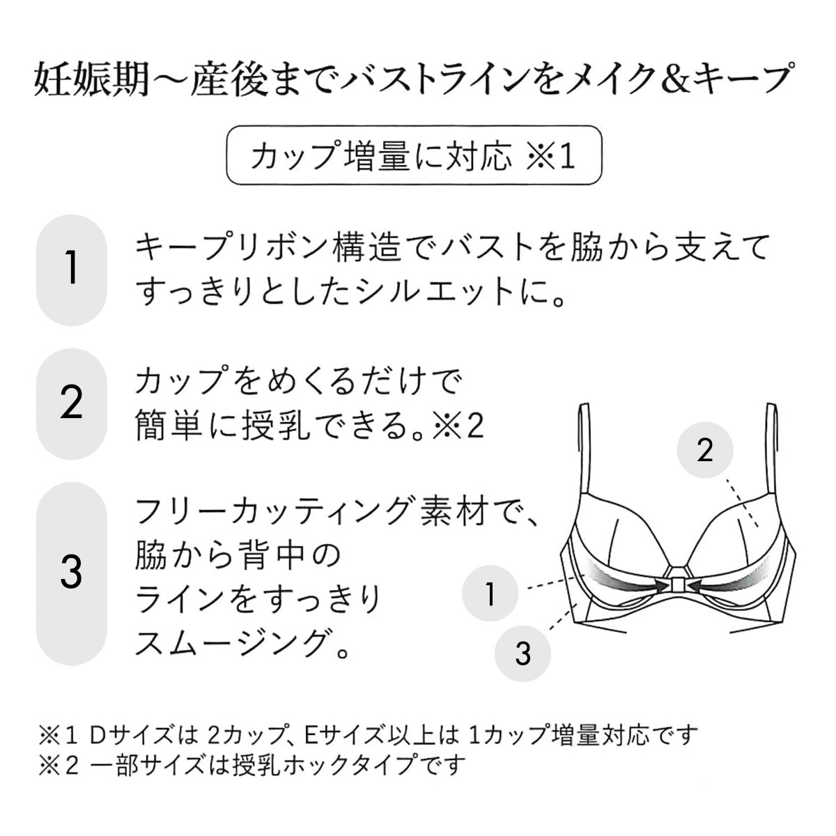 ※Dカップは2カップ増量対応です。