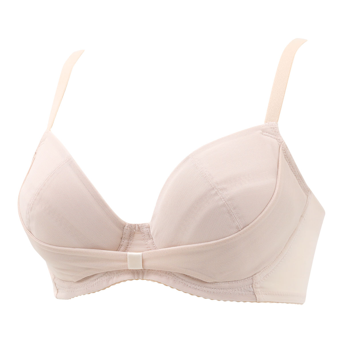 伸縮性のあるカップを使用し、産前~産後の授乳前後のバストボリュームの変化に対応できます。上部に厚みをもたせたピタッとパッド内蔵で、産前~産後・卒乳までのバストボリュームの変化に合わせて自然にボリュームアップし、きれいなバストラインに。