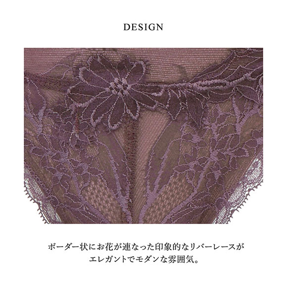 後ろ裾はアウターにひびきにくいストレッチレース仕上げ。ウエストとマチ裾はやわらかく伸縮するストレッチテープを使用。段差になりにくく、圧迫感の少ない快適なはき心地です。フロントは裏打ち付きで透けにくく、セクシーになり過ぎません。