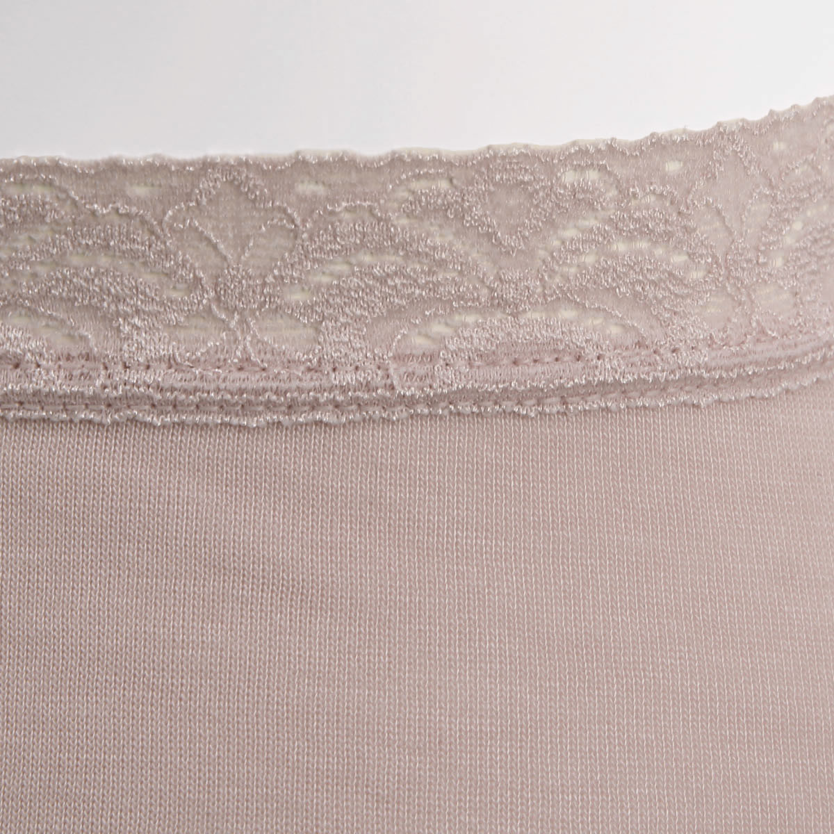ウエスト、裾周りにはストレッチレースをあしらい、くい込みにくくショーツラインがひびきにくい仕様になっています。シンプルで使いやすいノーマルショーツは、デイリー使いにオススメです。