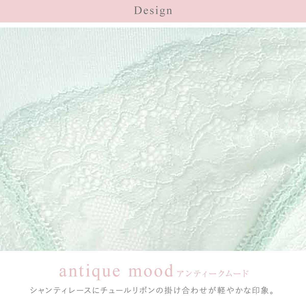 テーマは「antique mood(アンティークムード)」。ニュアンスのあるアンティークカラーで、こなれ感のあるおしゃれさが今の気分にマッチ!シャンティレースにチュールリボンの掛け合わせが軽やかな印象に仕上げています。