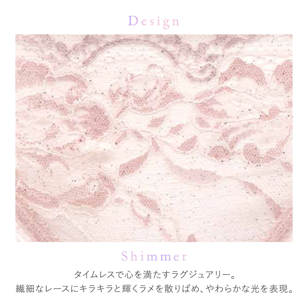 デザインテーマは「Shimmer(シマー)~きらめき~」タイムレスで心を満たすラグジュアリー。繊細なレースにキラキラと輝くラメを散りばめ、やわらかな光を表現しています。レースには再生糸を使用し、環境へのやさしさも重視したシリーズです。