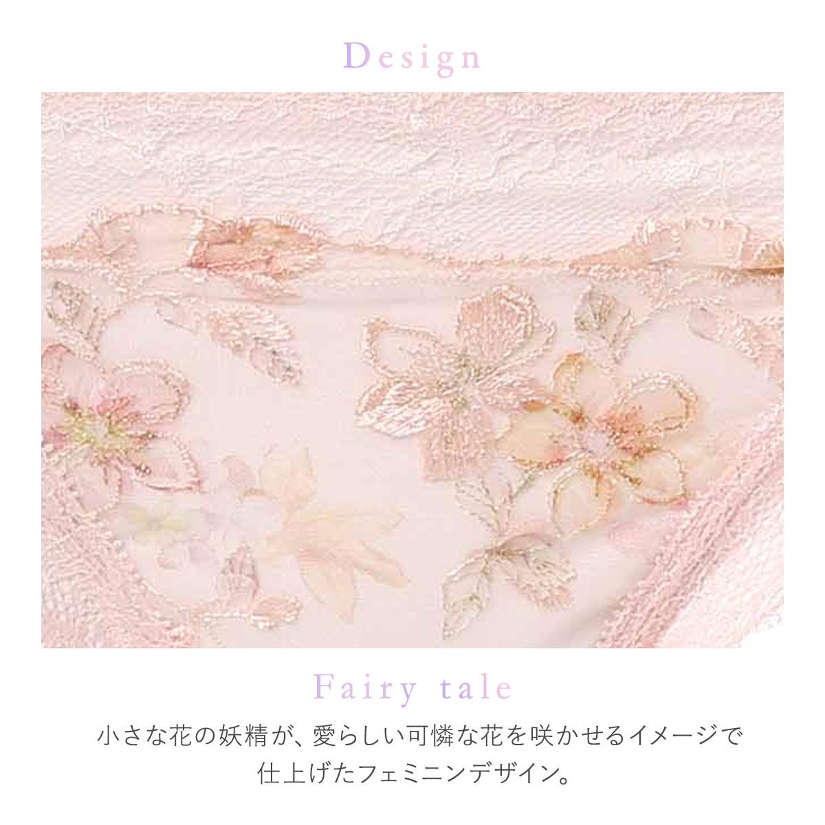 デザインテーマは「Fairy tale(フェアリーテイル)」。まるで童話の世界を夢見るように、大人になってもココロときめく、今も昔も親しみを覚える普遍的なかわいらしさを表現しています。小さな花の妖精が、愛らしい可憐な花を咲かせるイメージで仕上げたフェミニンデザインです。