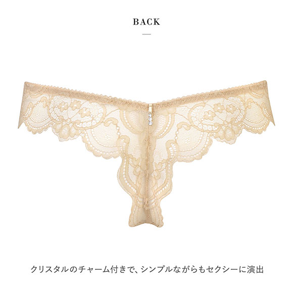 バックにはクリスタルのチャーム付きで、シンプルながらもセクシーに演出します。