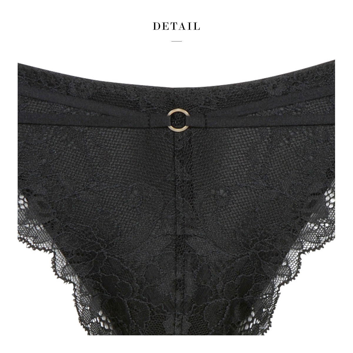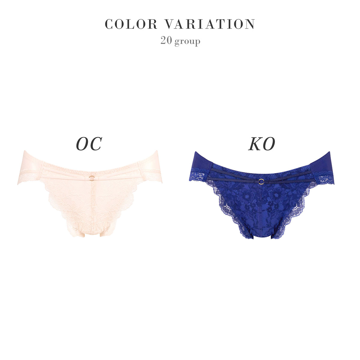 脚がすらりと長く見える、スーパービキニ丈・ハイレッグタイプのノーマルショーツ。ウエストのストリングがデザインのアクセントに。フロントから表マチまでレースを使用しています。