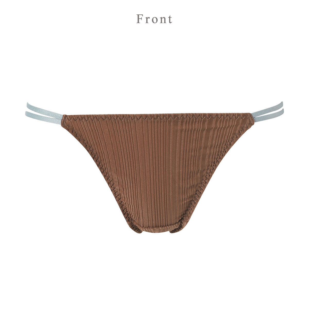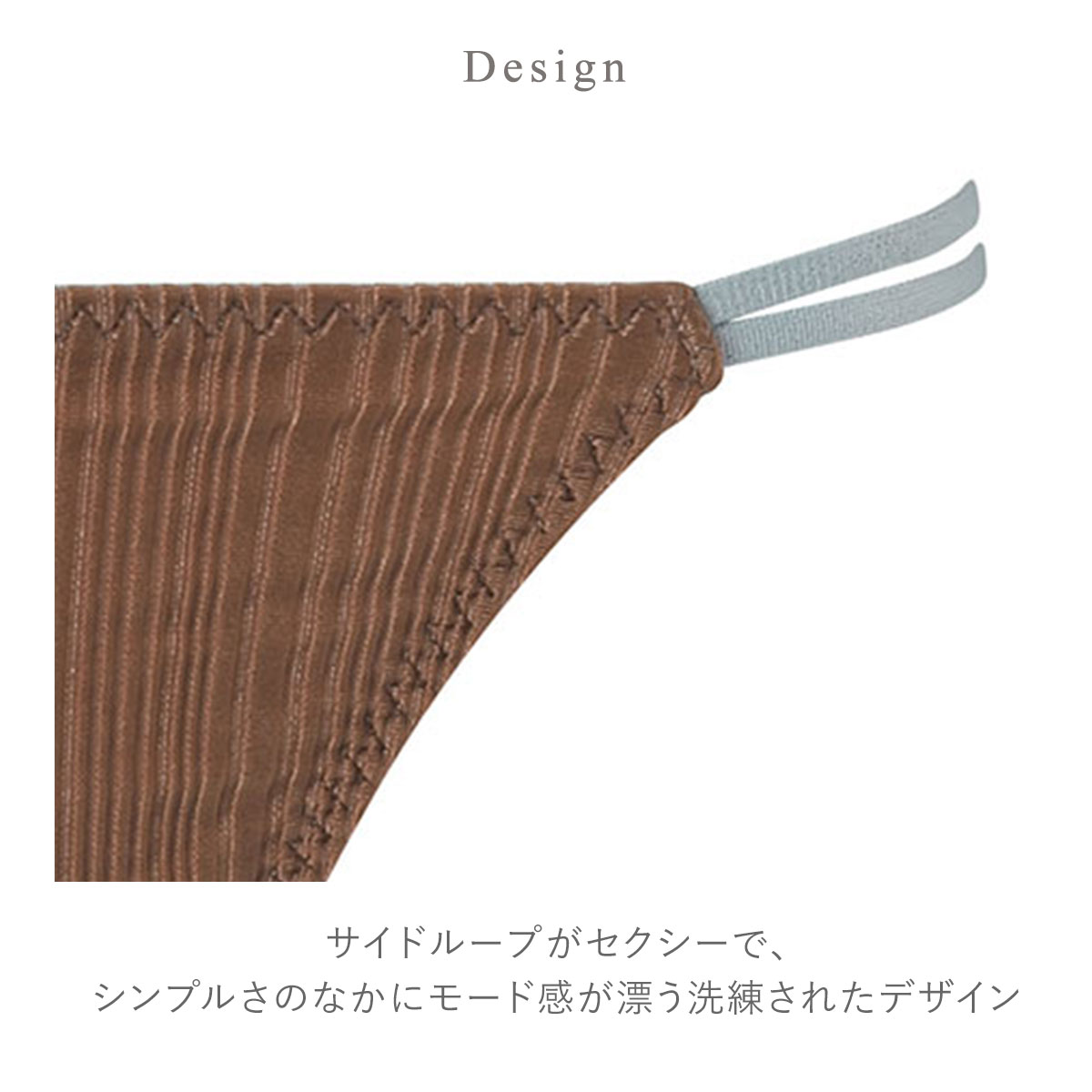サイドループがセクシーで、シンプルさのなかにモード感が漂う洗練されたデザイン。本体は軽やかなリブ素材でラクなはきごこち。