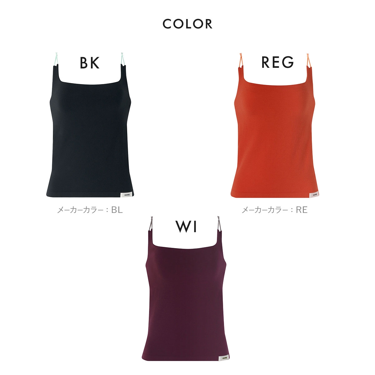 インナーとしての役割はもちろん、レイヤードアイテムとしても一枚で様になるデザイン。バイカラーがアクセントのダブルストラップがアクセントに。イン・アウトの2WAYで使用可能です。