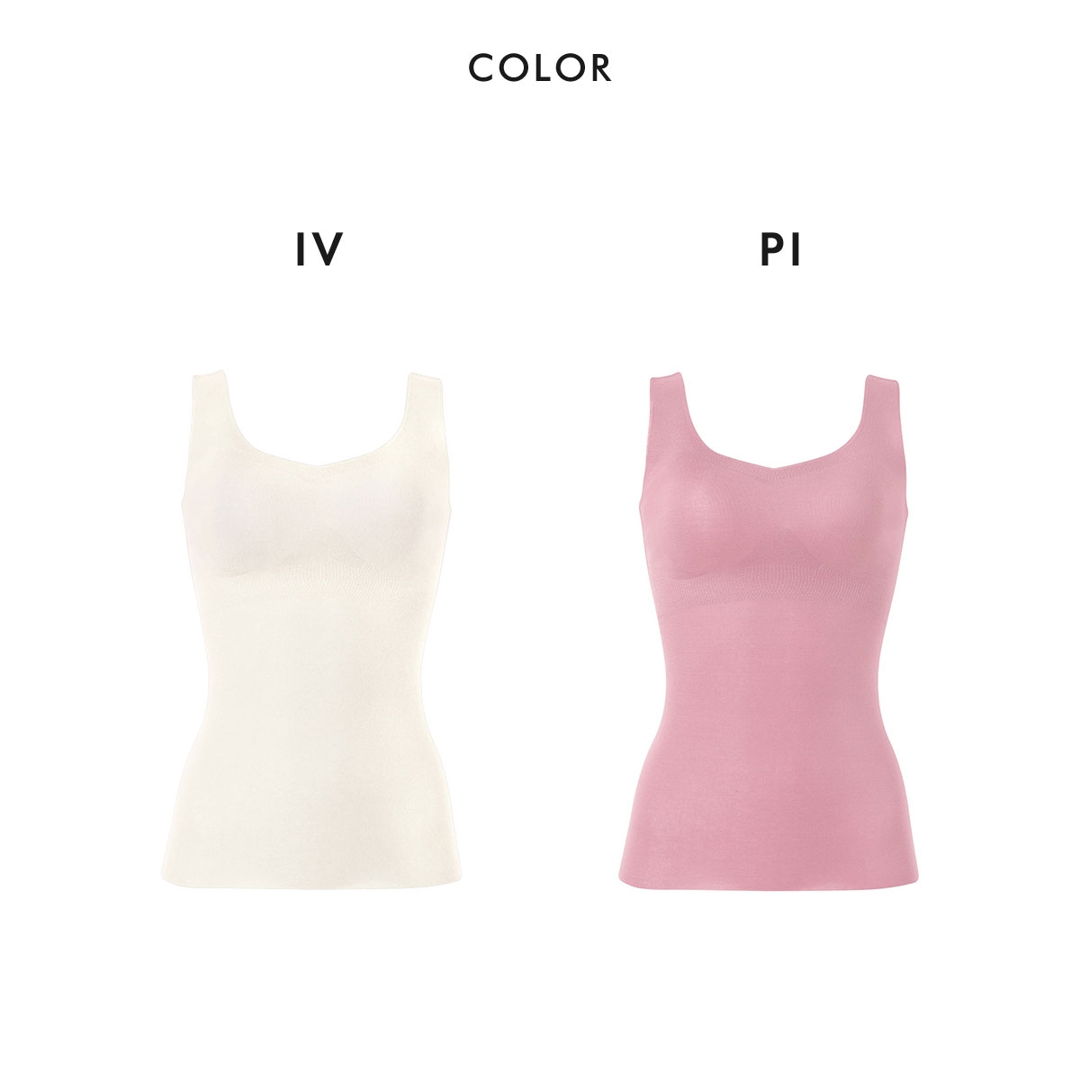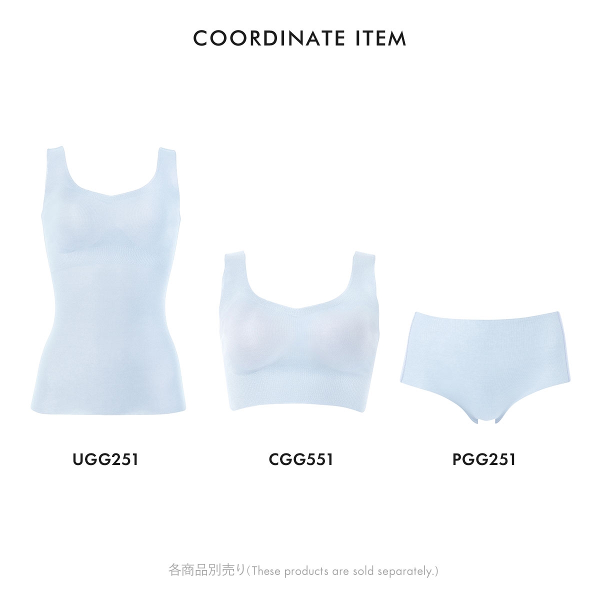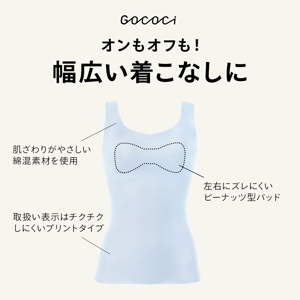 綿混素材を使用した、肌ざわりがやさしいラウンドタイプのブラキャミソール。伸びがよく、しなやかな風合いでバストをふんわりと包みフィット。