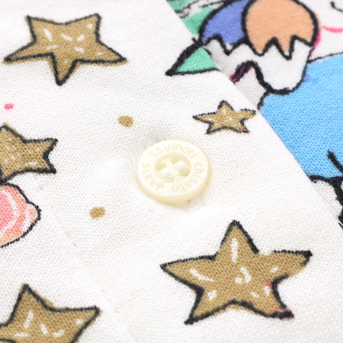 ゴールドパールや手袋、星柄のファー、サングラスでドレスアップした女の子が、夜空のパーティを楽しんでいるイメージを表現したキュートなデザイン。