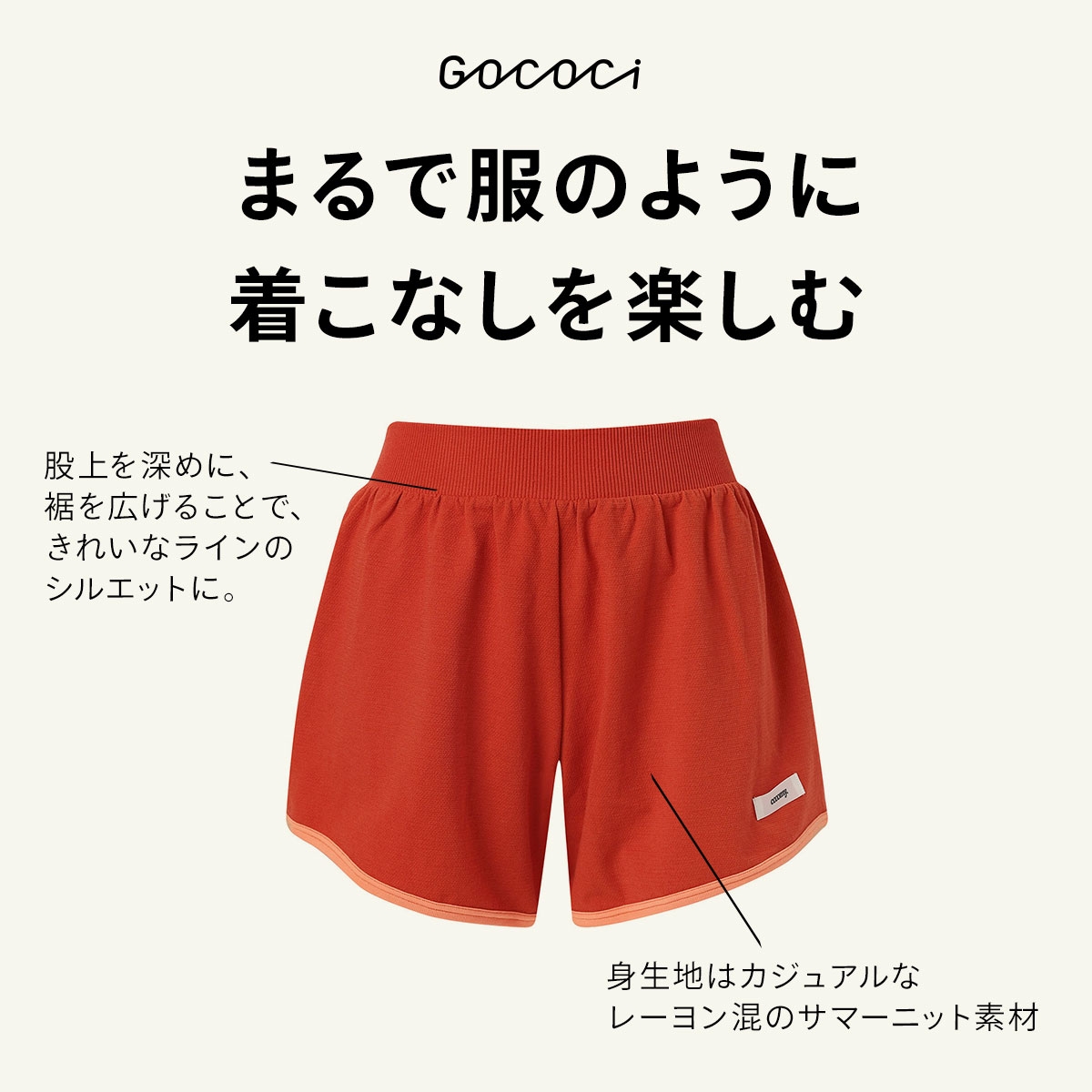 身生地はカジュアルなレーヨン混のサマーニット素材で、夏らしいシーンにピッタリ。股上を深めに設定し、裾を広げた設計にすることで、きれいなラインのシルエットに。