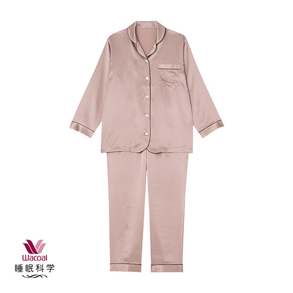 ワコール Wacoal 睡眠科学 レディース シルクサテン シャツパジャマ 長袖 上下セット シルク100% 絹 LL(PBR-ピンクブラウン-LL) SOLDOUT