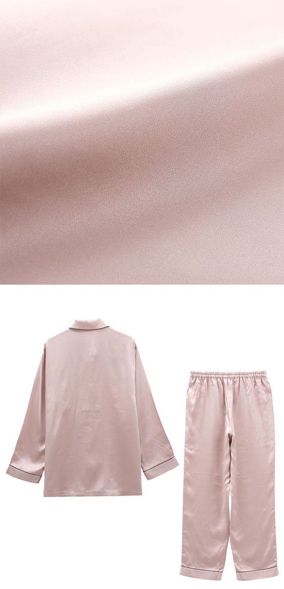 サテンの心奪われるような光沢としなやかな風合いが肌をつつみます。素材の美しさを愉しめる優しいカラーに上品なパイピングで、ながくご利用いただけるシンプルで高級感溢れるデザイン。