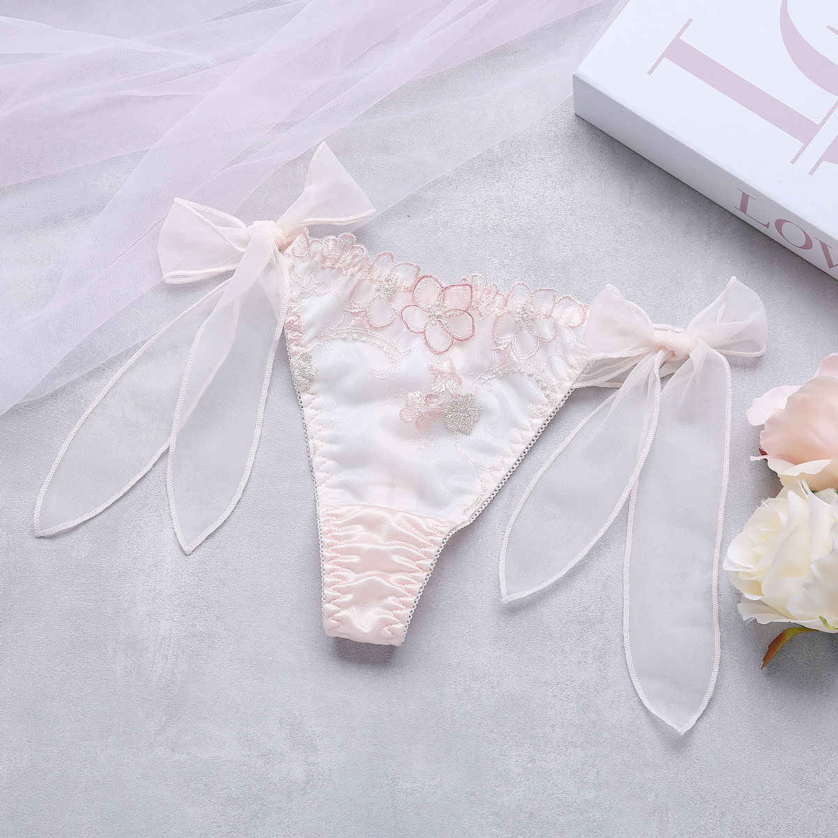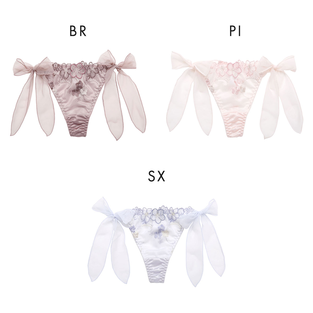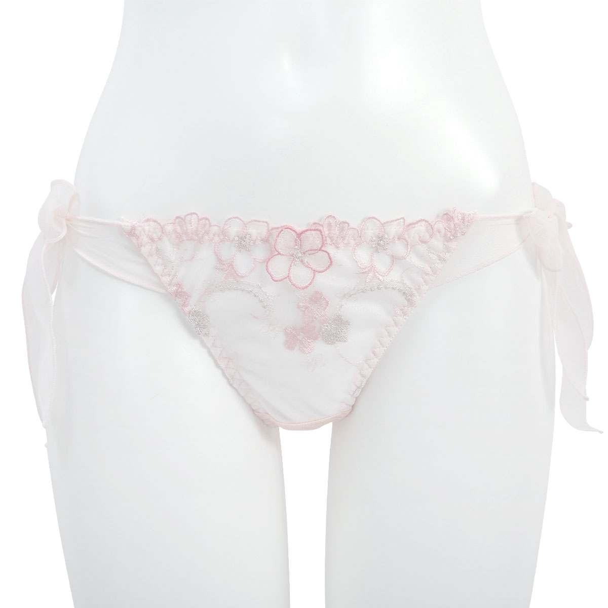 お花の刺繍レースがフェミニンなふんわりサイドリボンTバック